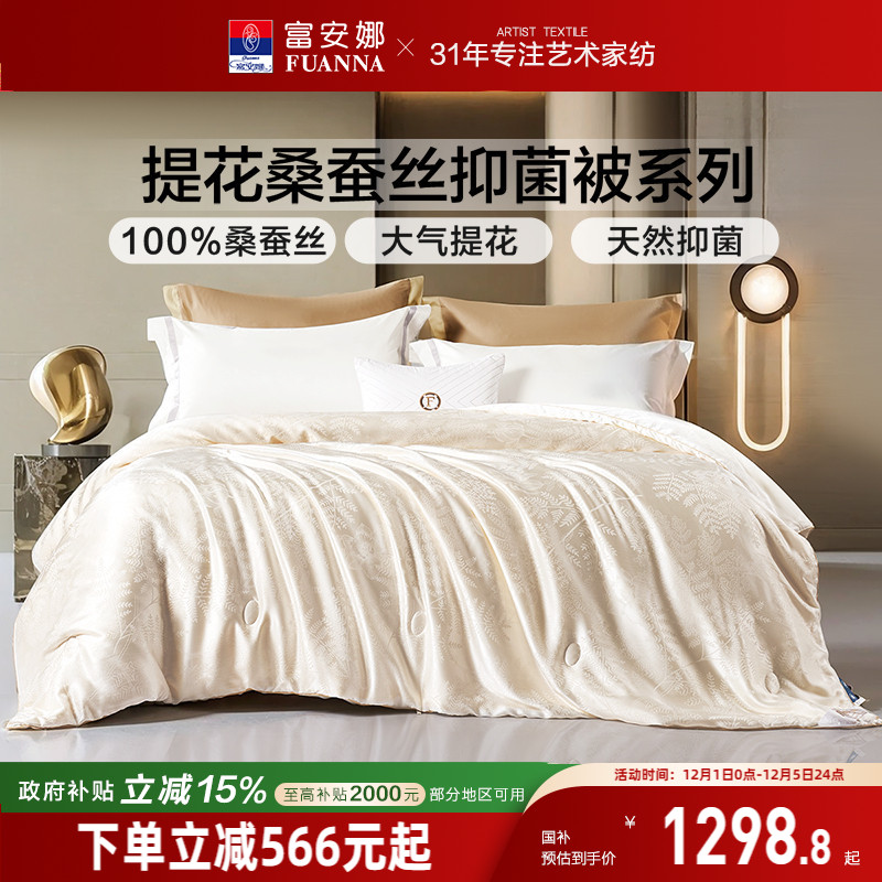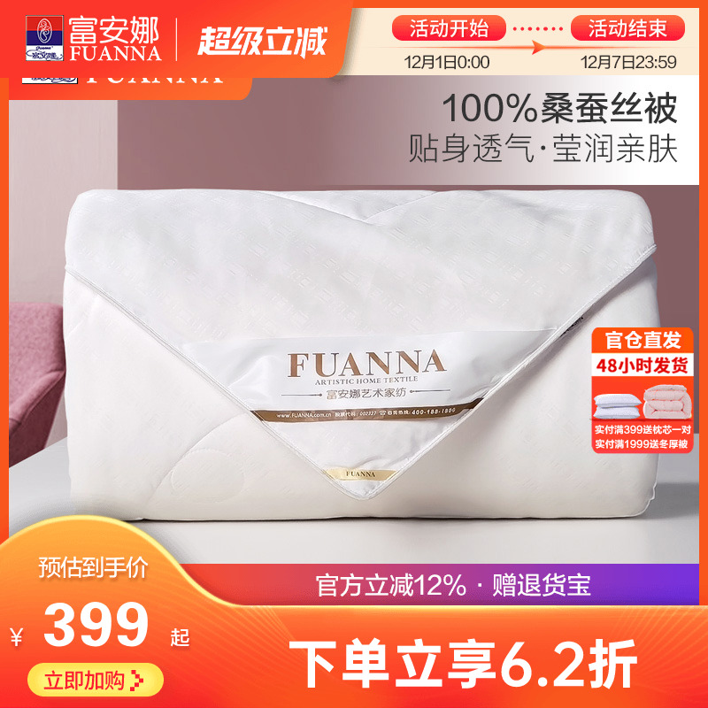 富安娜被子蚕丝被四季通用桑蚕丝被芯空调被二合一子母夏凉被冬被