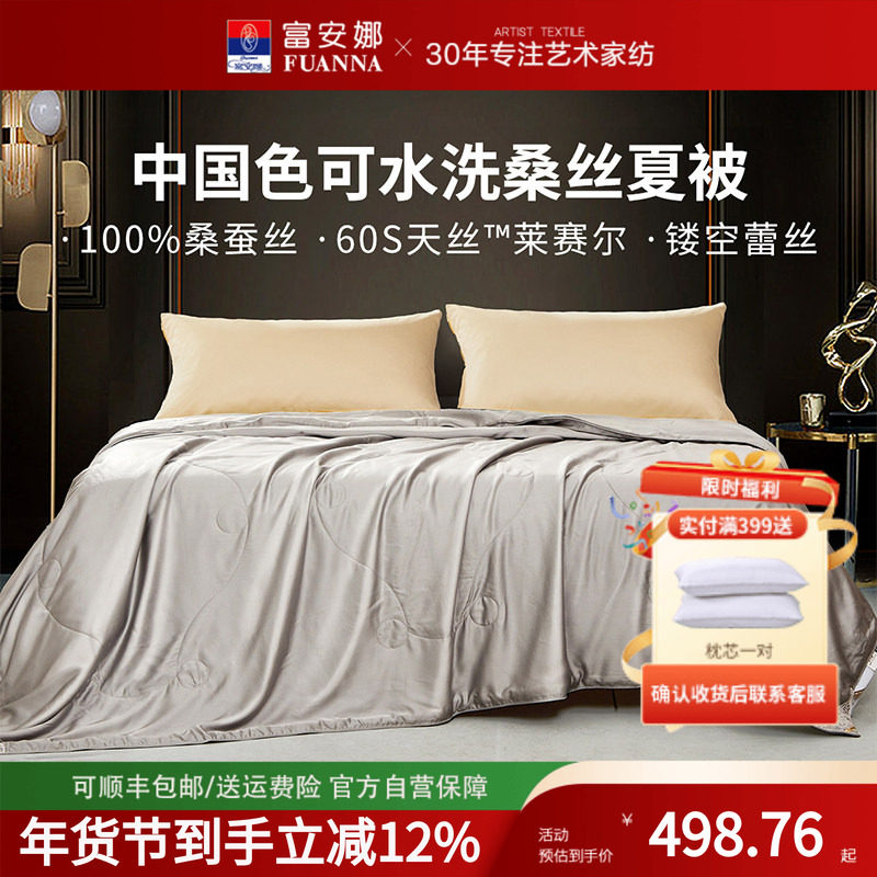 富安娜家纺蚕丝被60S天丝可水洗夏凉被桑蚕丝被芯宿舍家用被子