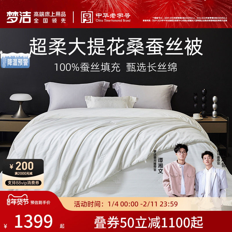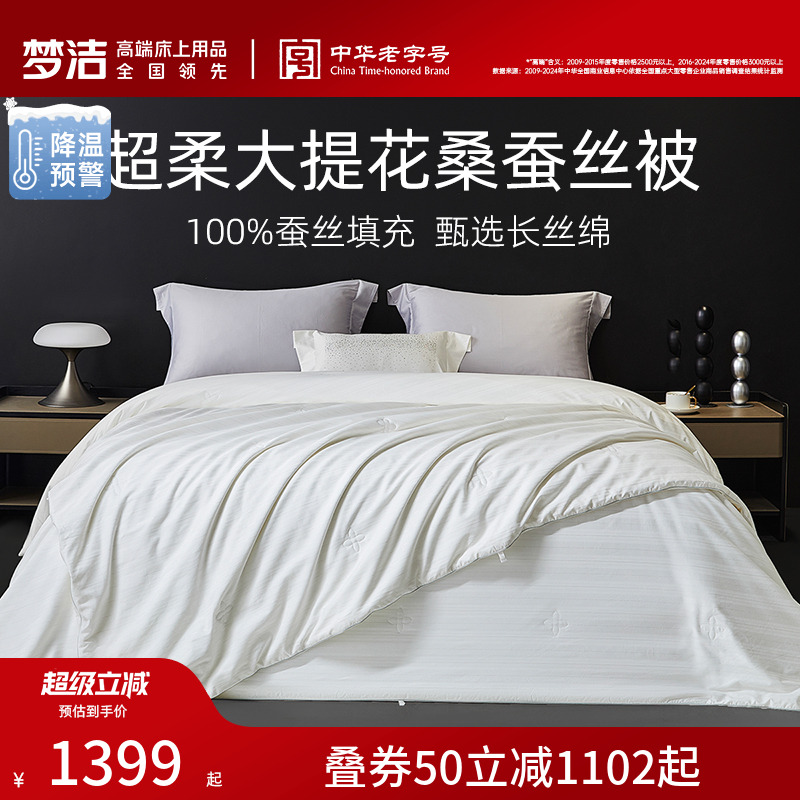 梦洁100%桑蚕丝被芯被子二合一子母被春秋被冬被四季通用抗菌结婚