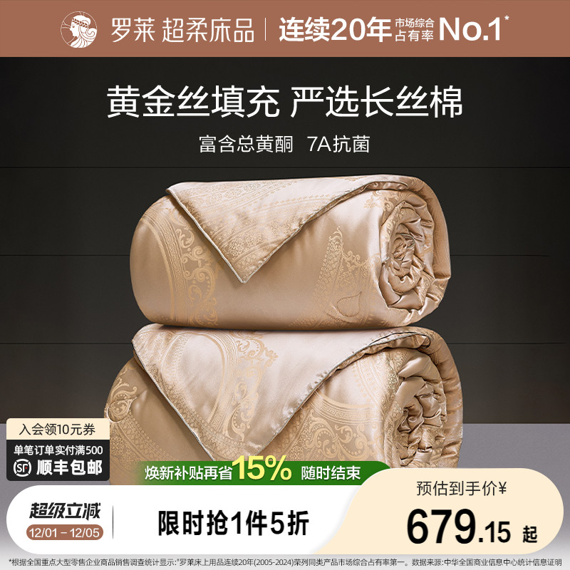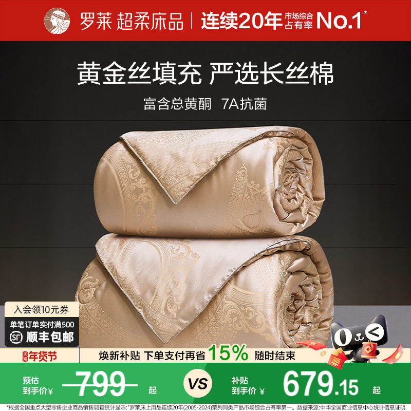罗莱家纺大提花黄金桑蚕丝被芯春秋被子加厚冬二合一被芯四季可用