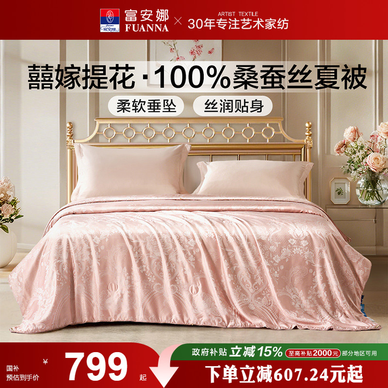 富安娜桑蚕丝被芯陪嫁空调被婚嫁春秋被二合一子母被喜被结婚被子