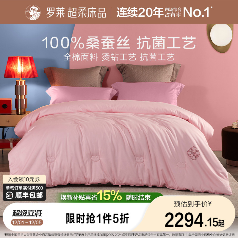 罗莱家纺被子双人床婚庆喜被全棉100%桑蚕丝被芯二合一子母被子