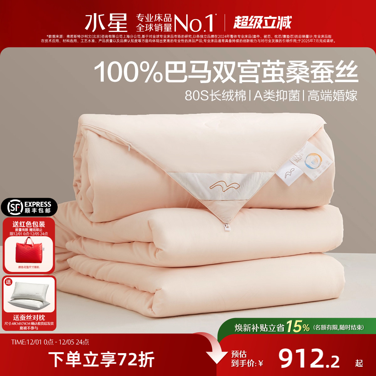 水星家纺100%桑蚕丝被冬被抗菌子母被春秋被二合一婚庆被保暖被芯