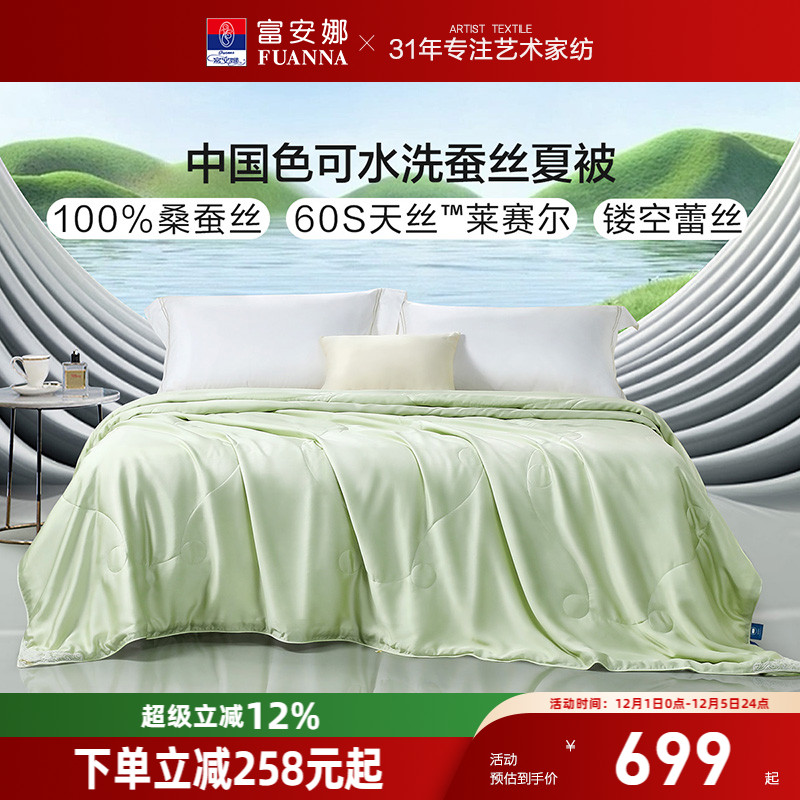富安娜家纺可水洗桑蚕丝被芯夏凉被60S天丝莱赛尔宿舍薄款空调被