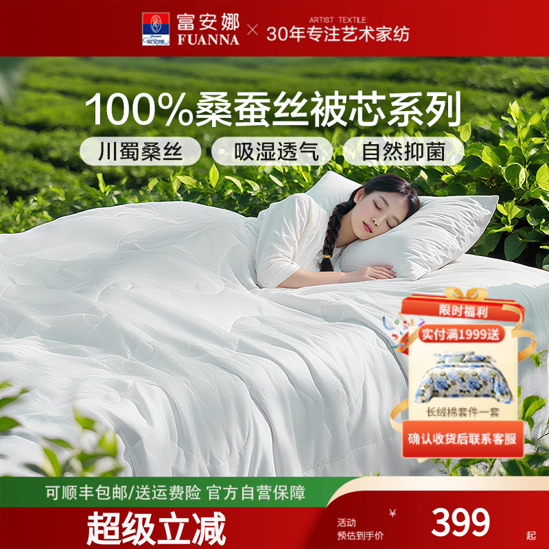 富安娜桑蚕丝被芯春秋被四季被夏凉被二合一子母被空调被褥冬厚被