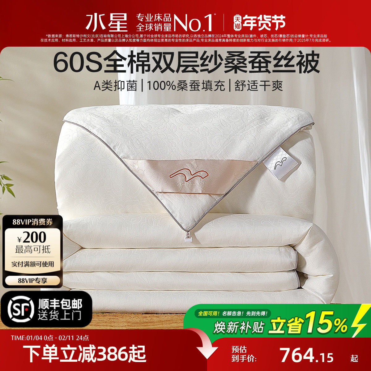 水星家纺桑蚕丝被芯60S全棉双层纱蚕丝被保暖四季被子子母被送礼