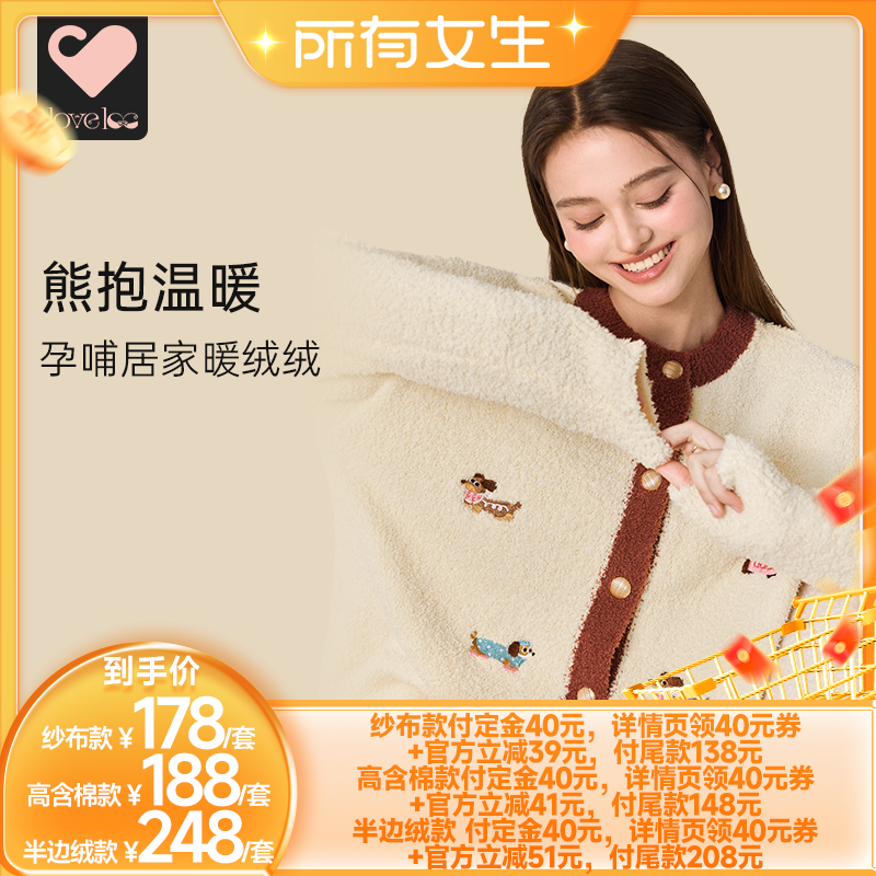 【立即付定金!所有女生直播间】loveloc纯棉纱布月子服冬半边绒