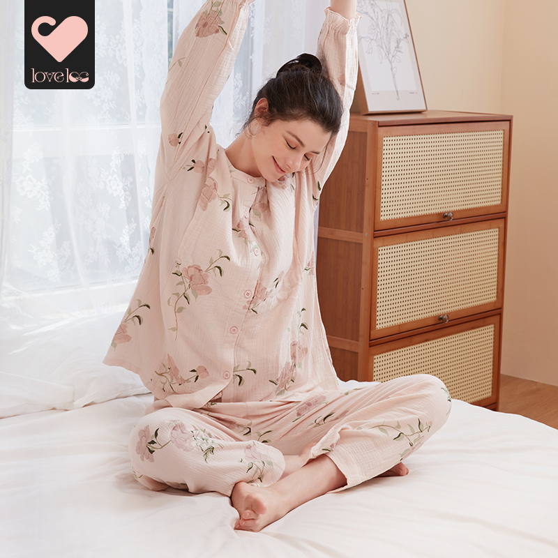 loveloc月子服孕妇睡衣纯棉纱布哺乳睡裙秋冬产妇家居服春秋待产