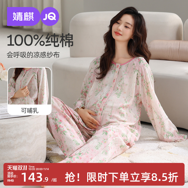 富朵春秋季孕妇睡衣纯棉纱布月子服孕期产妇产后哺乳家居服两件套