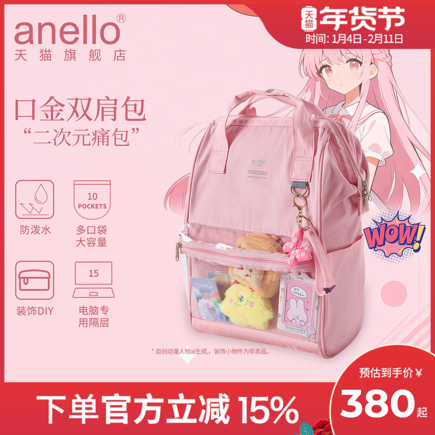 anello旗舰店痛包双肩包口金包马卡龙色系DIY二次元男女潮流ins风