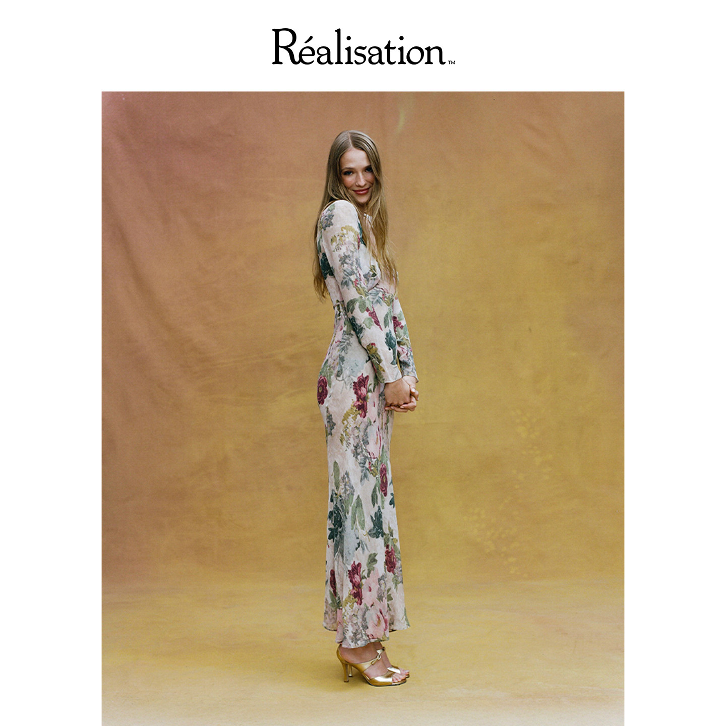 RealisationPar连衣裙深V斜裁波西米亚风长袖长款真丝裙 The Inka