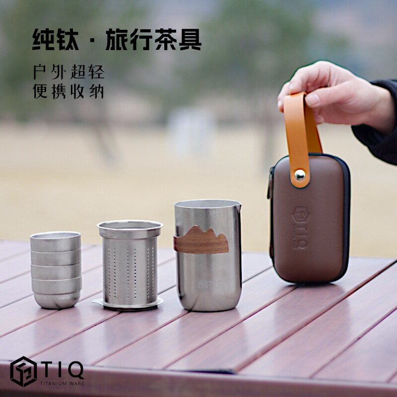 纯钛旅行茶具户外便携式快客杯套装露营外出一壶四杯泡茶壶收纳包