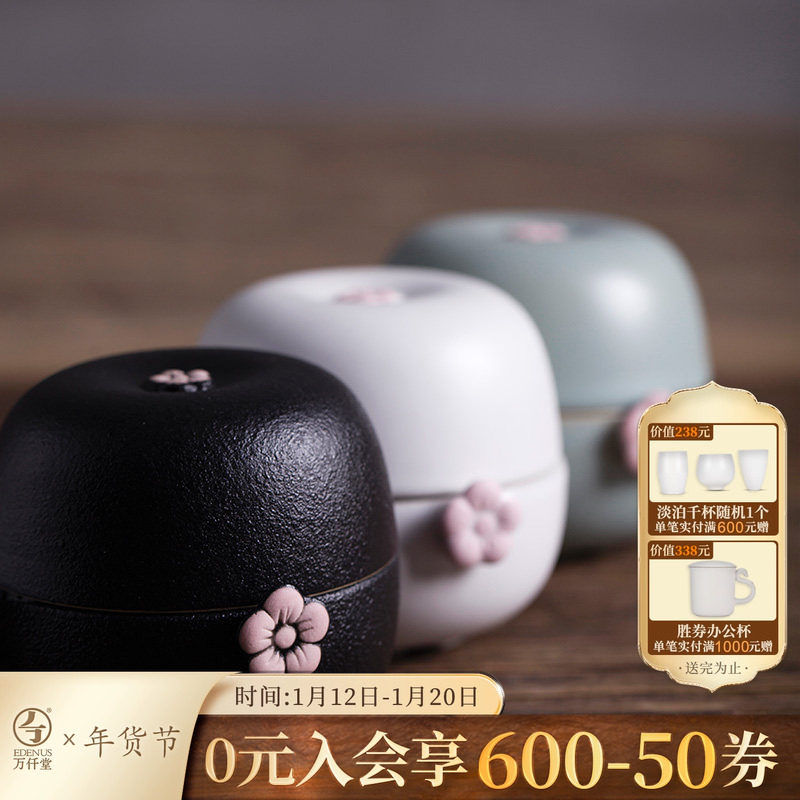万仟堂一壶一杯快客杯女士一人便携式陶瓷单人办公室泡茶具梅花客
