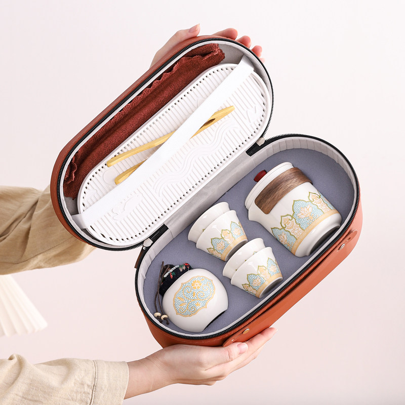便携式旅行茶具套装陶瓷一壶四杯快客杯户外露营泡茶年会活动礼品