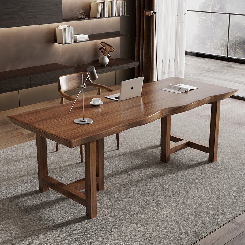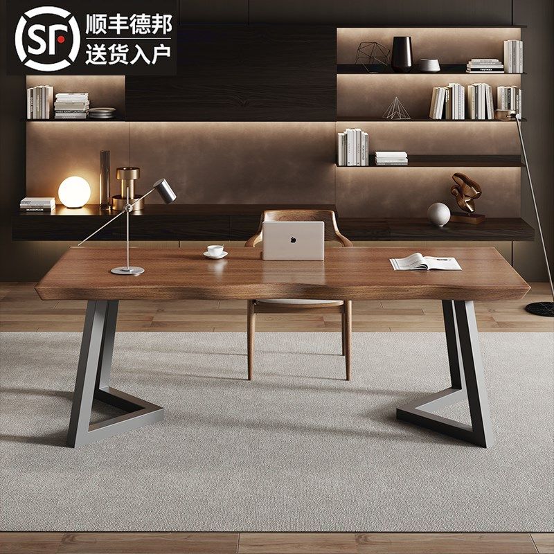 实木书桌简约现代家用办公长条电脑桌台式铁艺学习桌子双人工作台