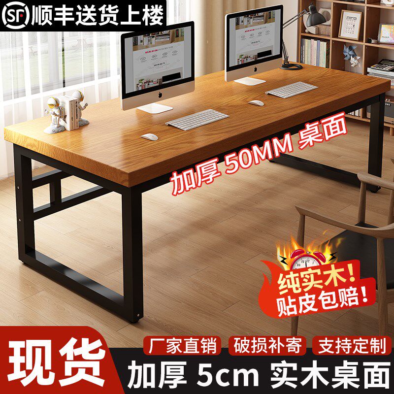 实木电脑桌台式家用简约现代铁艺办公书桌卧室长条双人桌子工作台