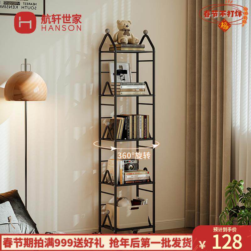 书架落地置物架简易夹缝窄架子可移动铁艺书桌收纳儿童旋转小书柜
