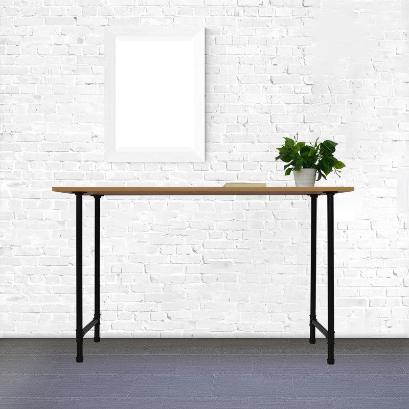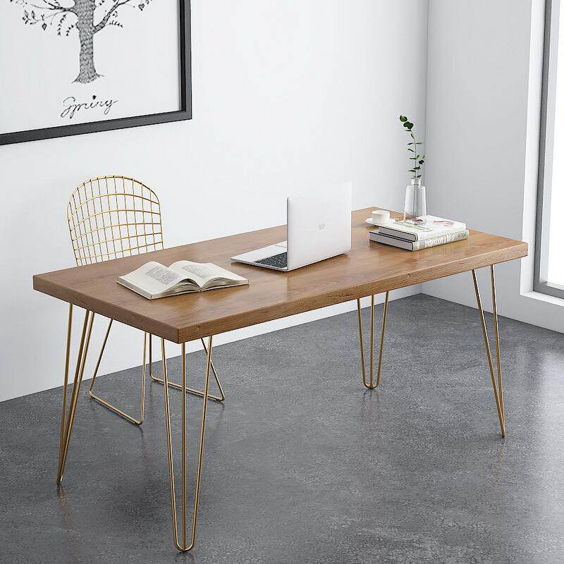北欧实木电脑桌家用工作台铁艺书桌松木办公桌简洁长条桌咖啡桌子