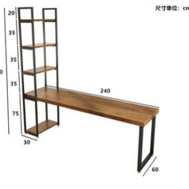 简约家用实木铁艺书桌书架一体电脑桌置物架组合卧室写字学习桌子