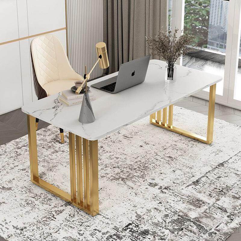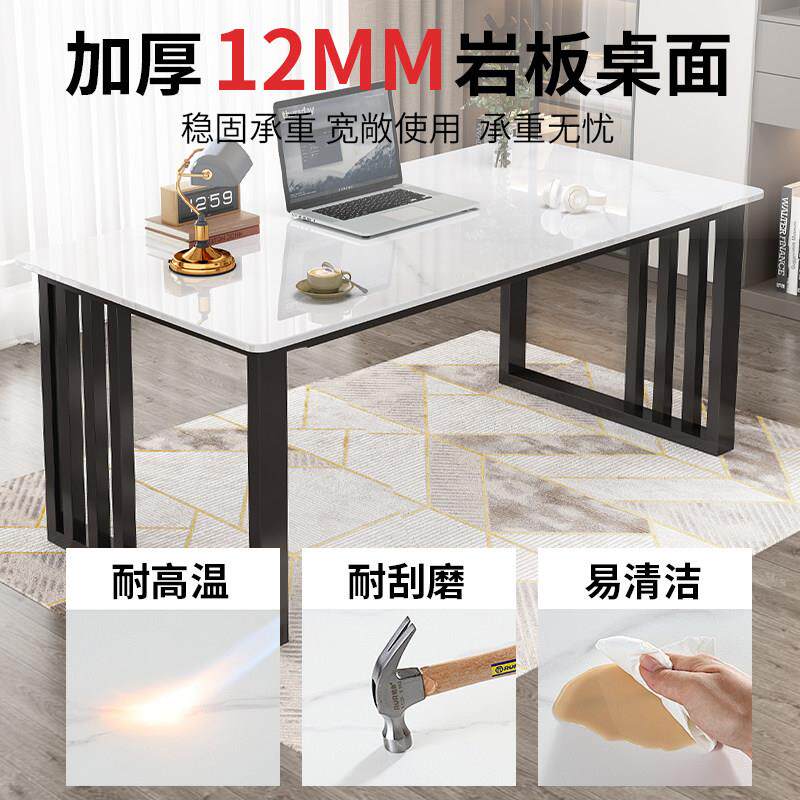 轻奢北欧岩板书桌电脑桌台式现代简约办公桌家用书房铁艺写字桌子