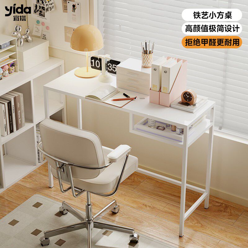 YDD拾光铁艺书桌白色 家用学习电脑桌子 卧室全金属梳妆台带抽屉