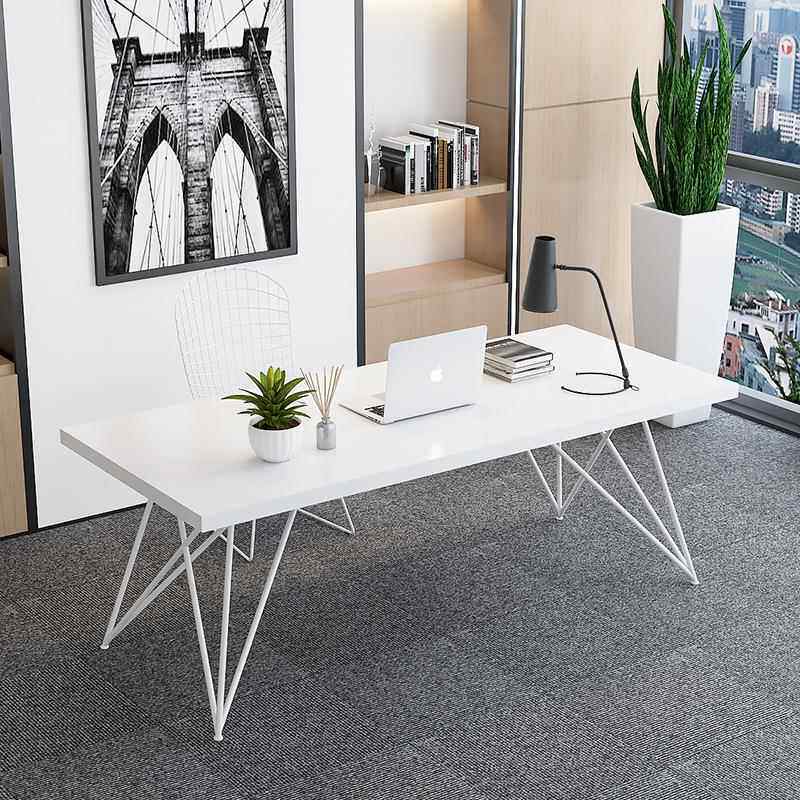 北铁艺书桌家用实木电脑约桌子简欧现代会议947桌白色长办公学习