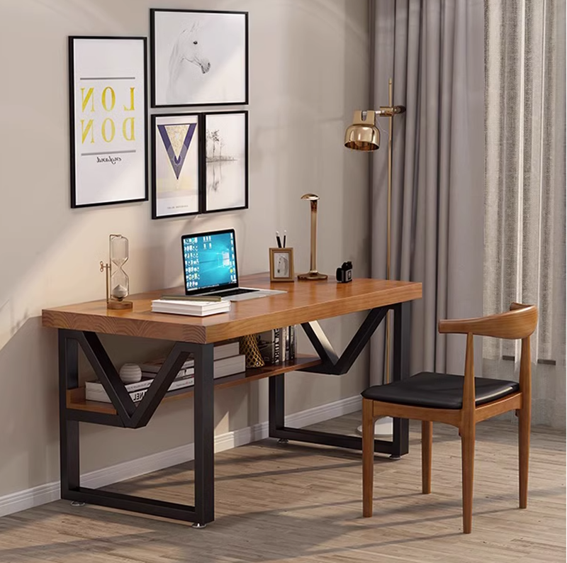 工业风铁艺书桌复古学习桌长方形写字桌家用卧室电脑桌台式办公桌