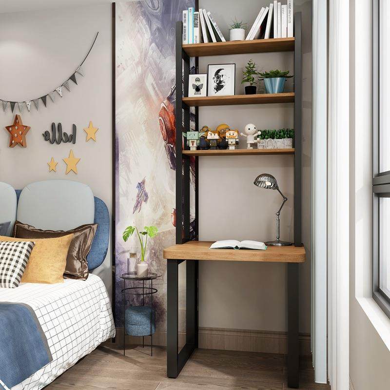 简约家木用实铁艺书桌书架一体脑桌置架组电合卧室写物MJ830字学