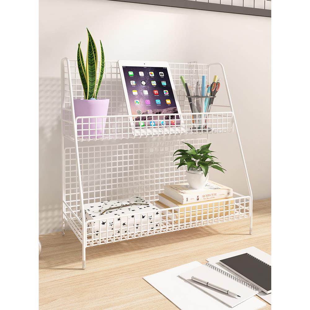 桌面置物架铁艺书桌收纳小架子办公桌置物架学生宿舍桌上分层架子