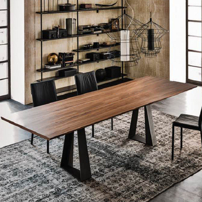 北欧简约实木会议桌长桌子工业风loft办公桌洽谈桌椅组合铁艺书桌