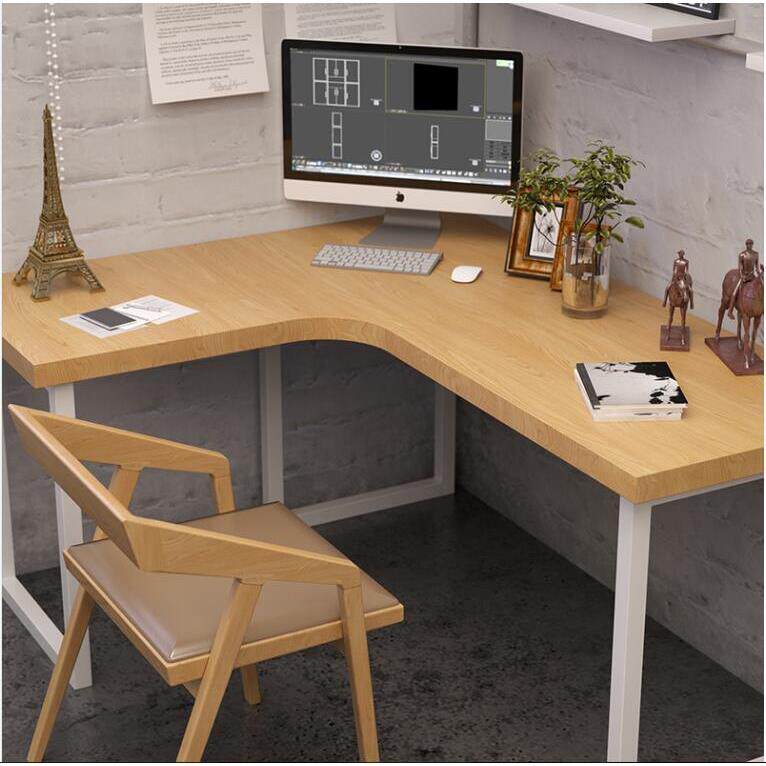 现代简约实木办公桌家用书房铁艺书桌办公室职员单人电脑桌椅组合