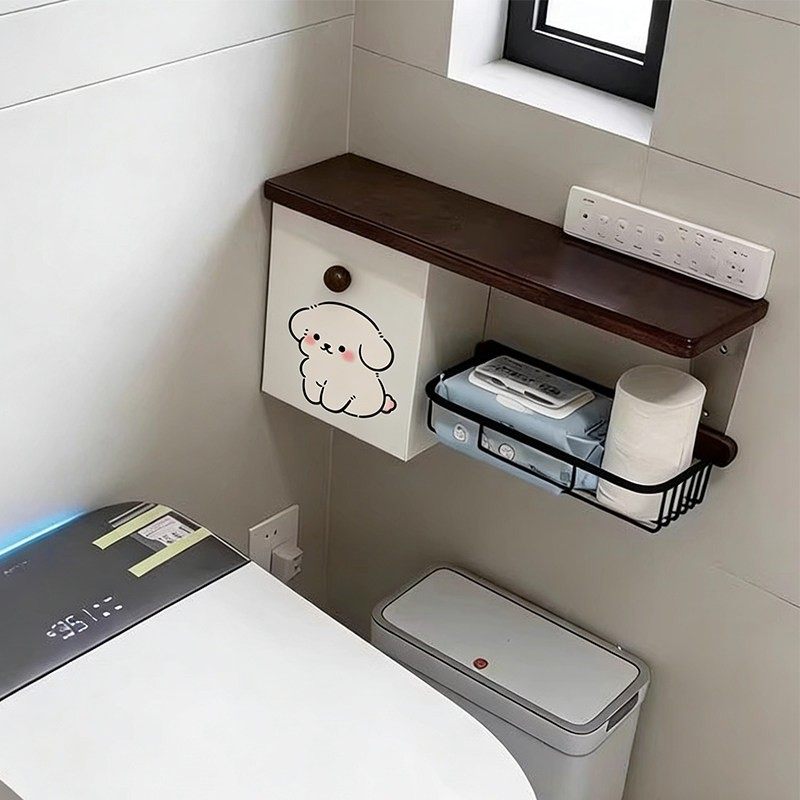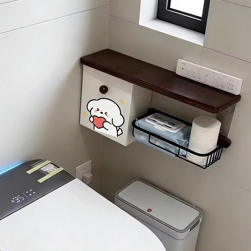 爱心小狗卫生间置物架马桶旁边纸巾盒厕所姨妈巾收纳盒壁挂储物柜