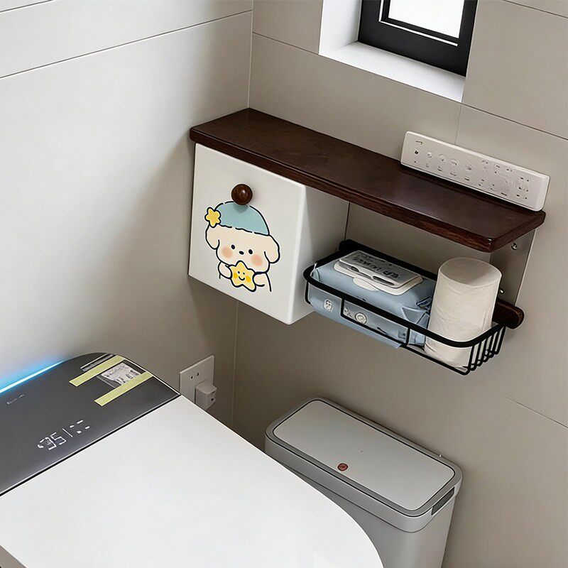 睡衣小狗卫生间置物架厕所纸巾盒卫生纸湿巾收纳盒壁挂储物柜马桶