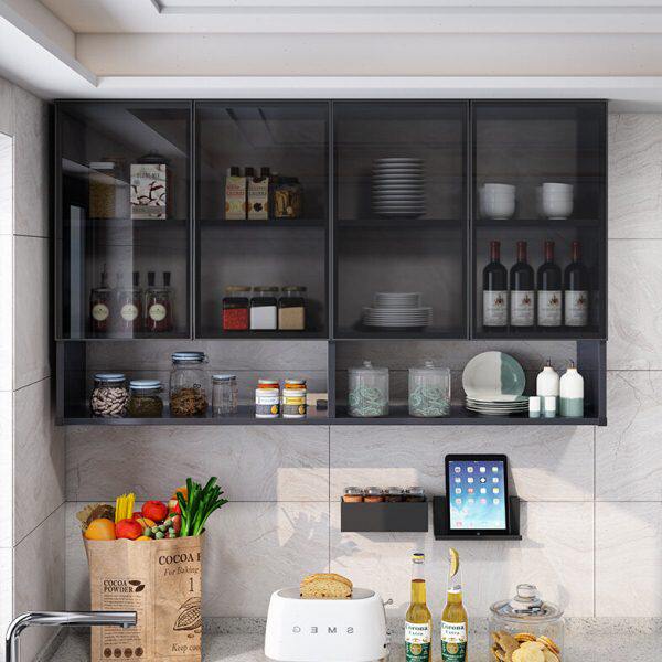 厨房轻奢玻璃门吊柜橱柜壁橱太空铝合金阳台墙壁柜简约壁挂储物柜