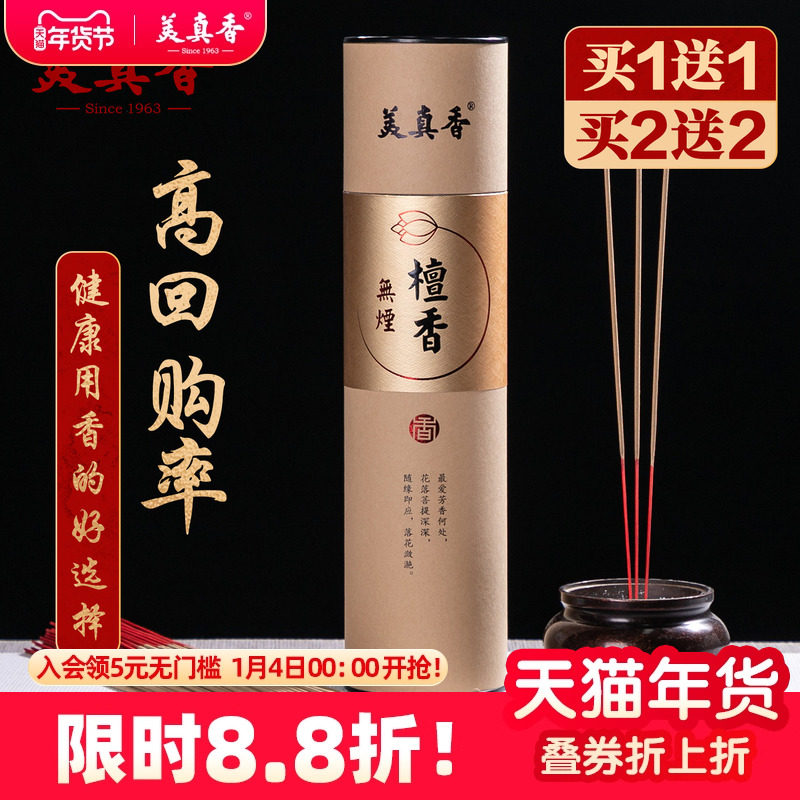 美真香无烟香檀香礼佛供香家用室内沉香竹签财神观音上供降真佛香