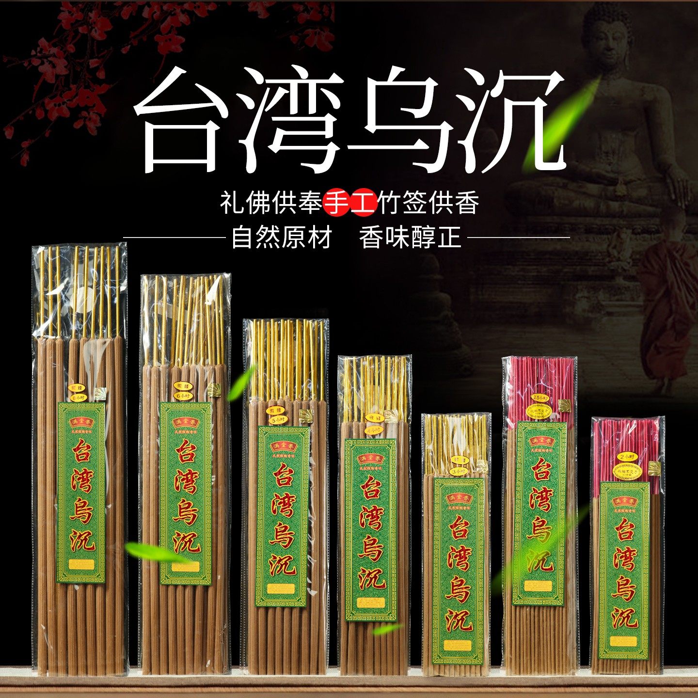 满堂香台湾乌沉供奉香檀香竹签香熏礼佛观音财神爷香家用室内拜神