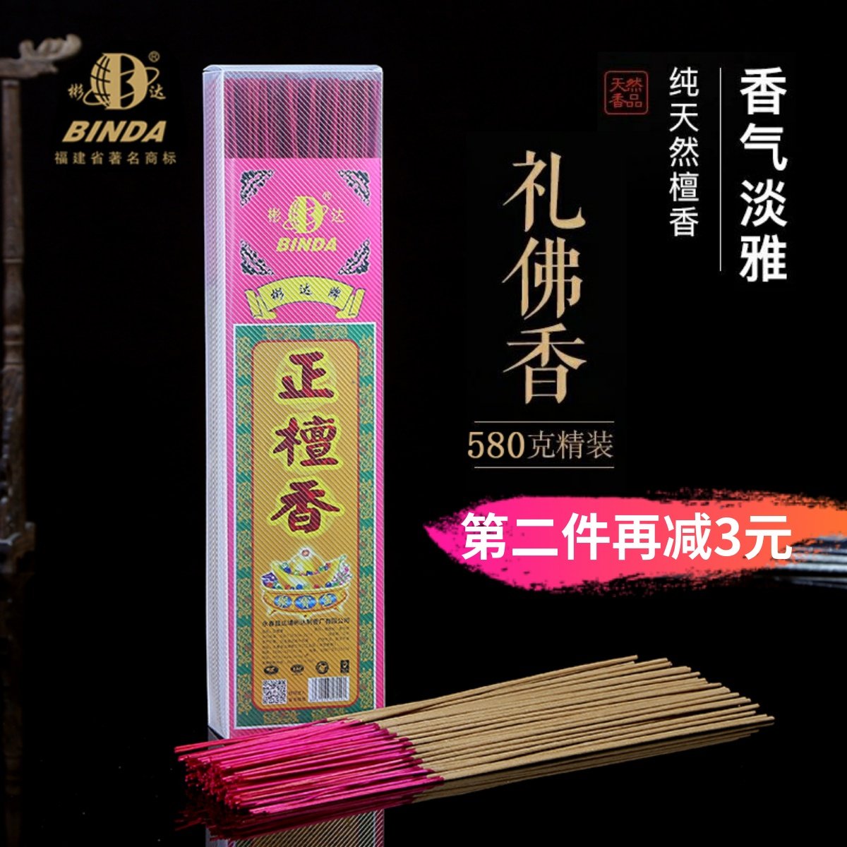 彬达天然正檀香竹签香供佛香家用线香室内礼佛香财神观音寺庙用香