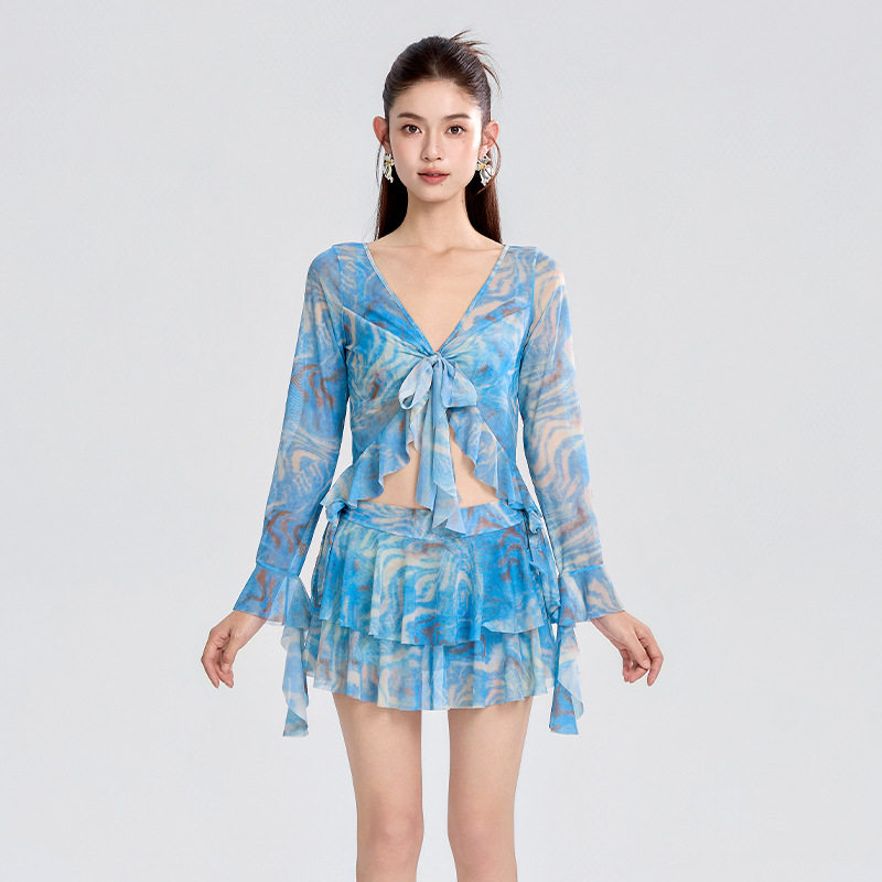 绝美氛围感小胸聚拢罩衫三件套甜美少女遮肉显瘦比基尼泳衣女度假