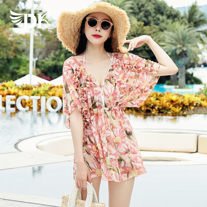 DK游泳衣女连身新款性感聚拢比基尼三件套纯欲保守遮肚显瘦温泉装