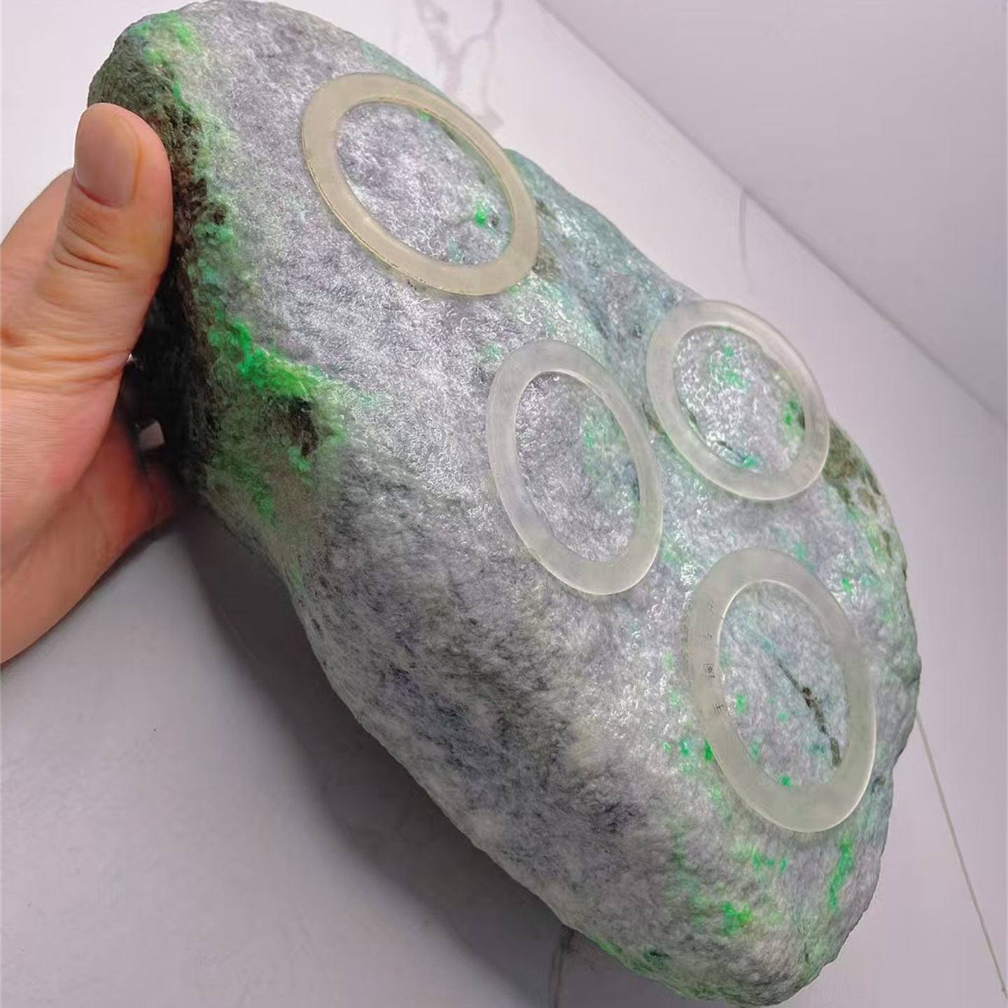 缅甸翡翠A货手镯边角碎剩下脚毛料 玉原石练手雕刻牌子明片色料