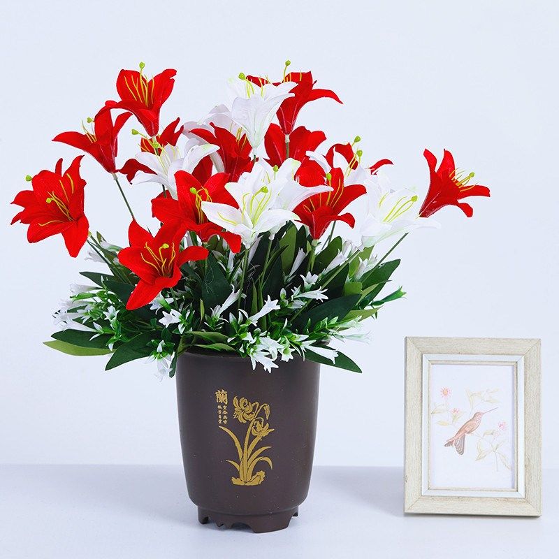 百合花仿真花套装客厅餐桌摆设花假花装饰摆放塑料花W干花插花摆