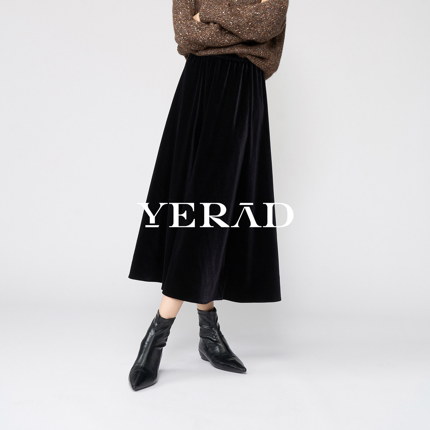 [2种裙长] 娅丽达高级黑色优雅丝绒半身裙女秋冬新款裙子好看长裙