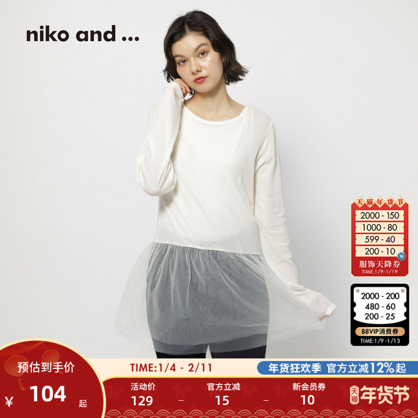 niko and ...长袖女2025冬季新款简约纯色拼接荷叶边上衣496287