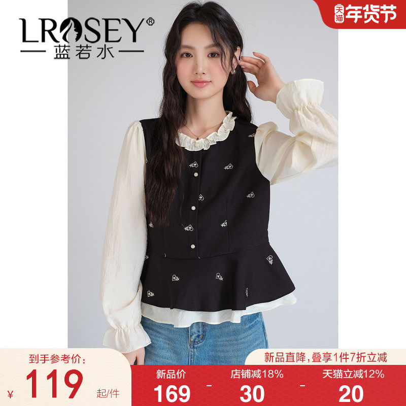 【韩系千金风绣花衬衫】蓝若水大码2026春装新款假两件荷叶边上衣