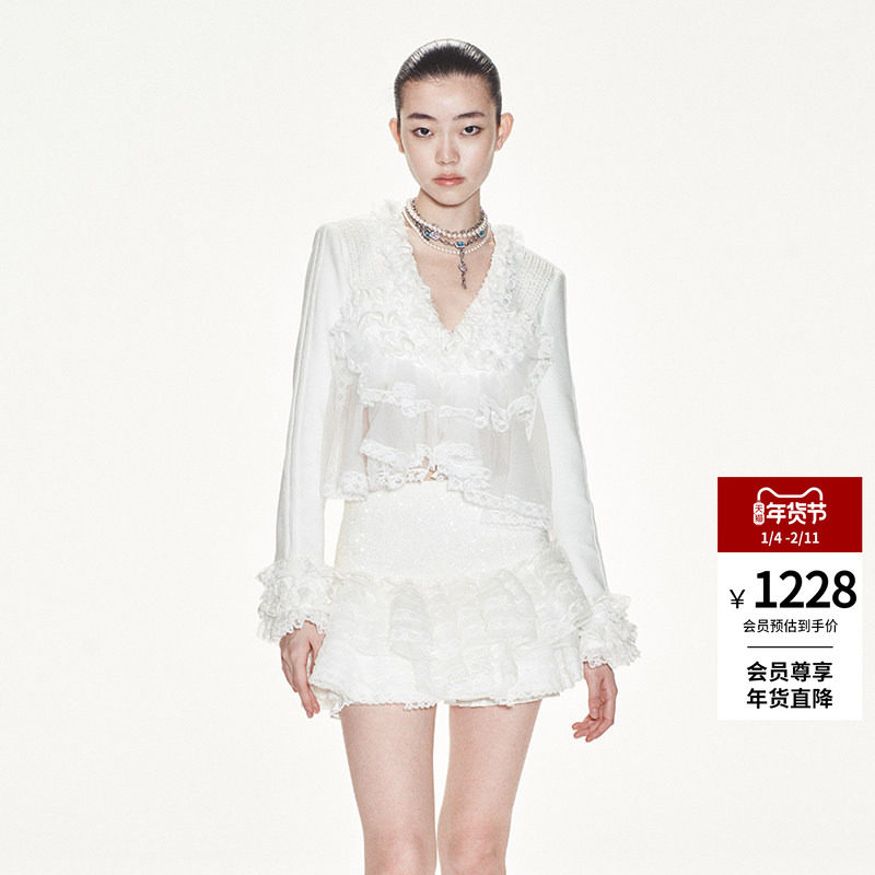 MSLAN南法庄园 25秋法式轻盈荷叶边上衣复古宫廷风通勤白衬衫
