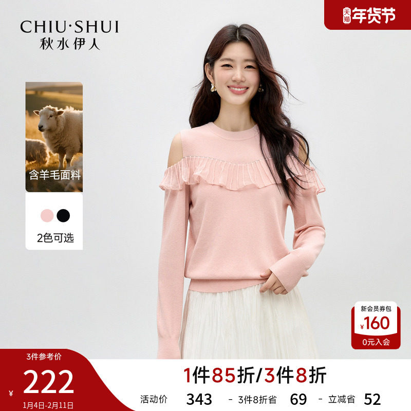 秋水伊人甜美假两件式荷叶边上衣2026年春季新款短款修身毛针织衫
