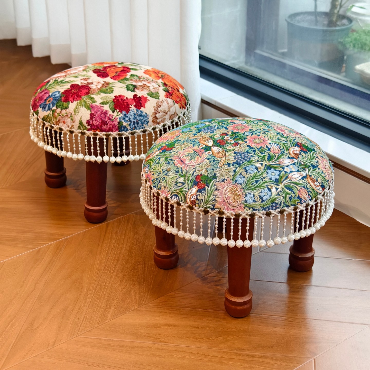 浪朵欧式田园民族风矮凳繁花漫舞创意吊穗小板凳换鞋凳小凳子坐凳