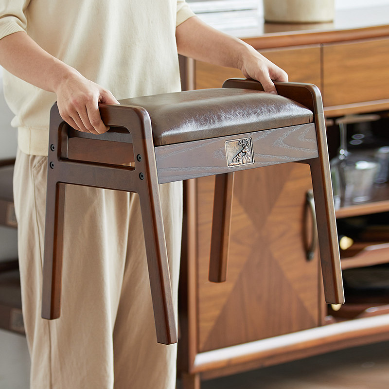 美式乡村家用客厅小凳子茶几门口换鞋长方矮板凳实木通用皮革软椅