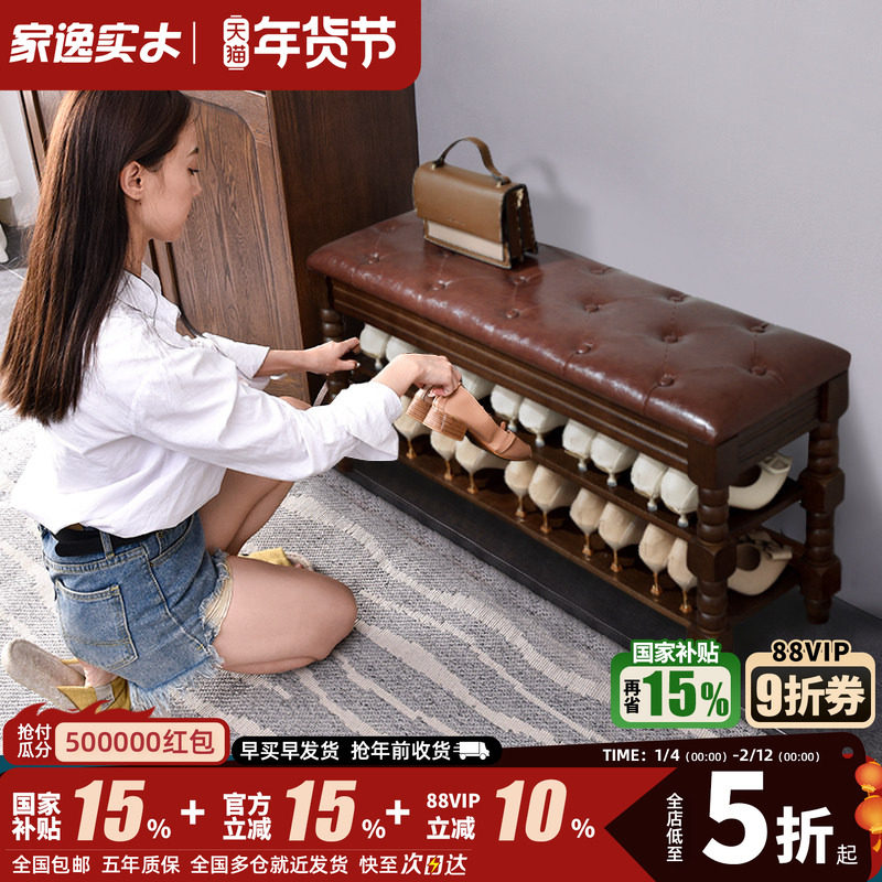 实木换鞋凳家用穿鞋凳美式进门口可坐式鞋柜鞋架储物凳玄关试鞋凳