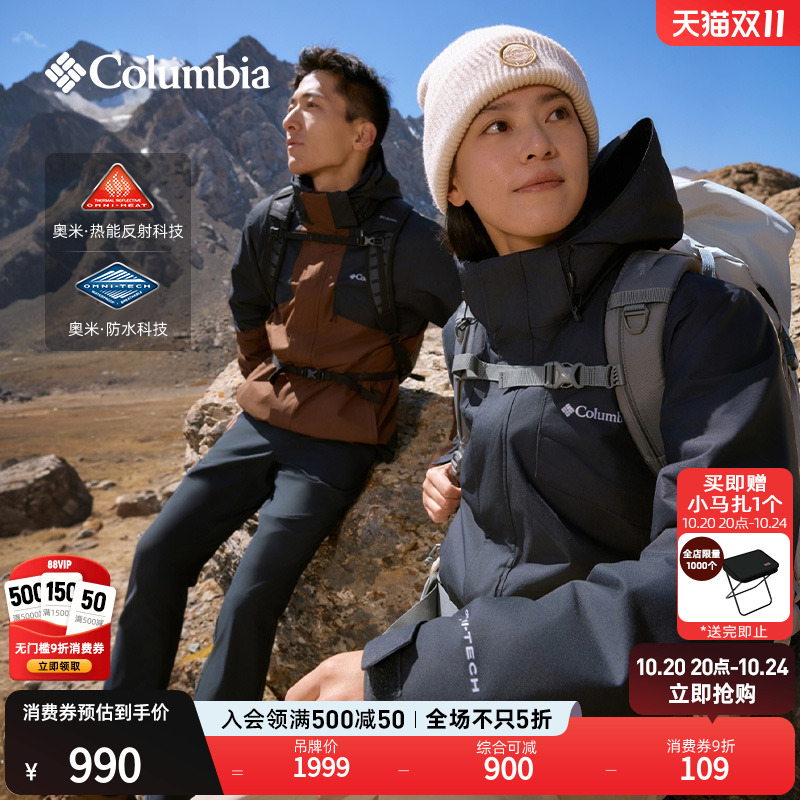 哥伦比亚户外25秋冬新品男女银点抓绒内胆三合一防水冲锋衣XE9099